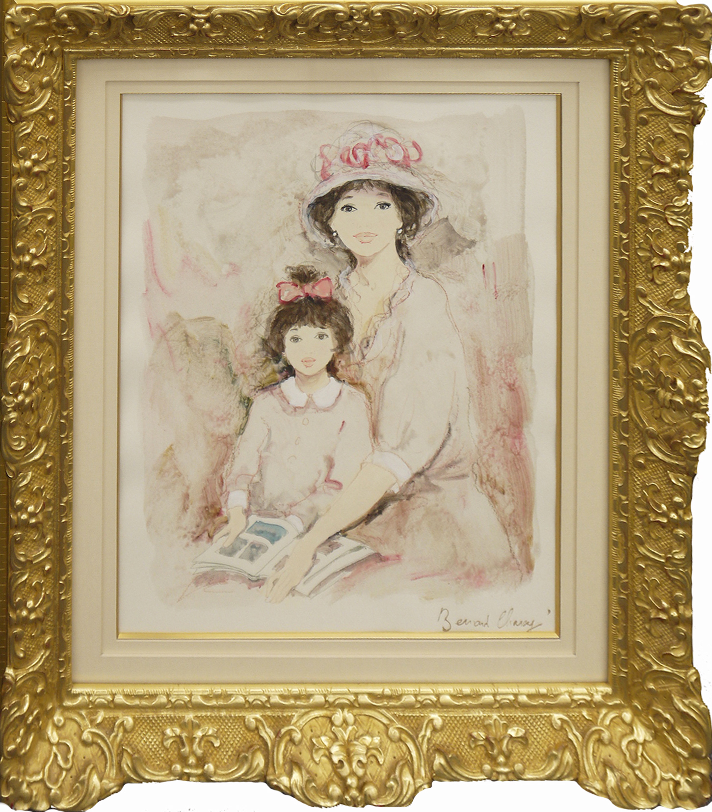 フランス生まれで、日本でも人気を博す人物画家・シャロワの軽やかなタッチを楽しめる、母子像の水彩画です。