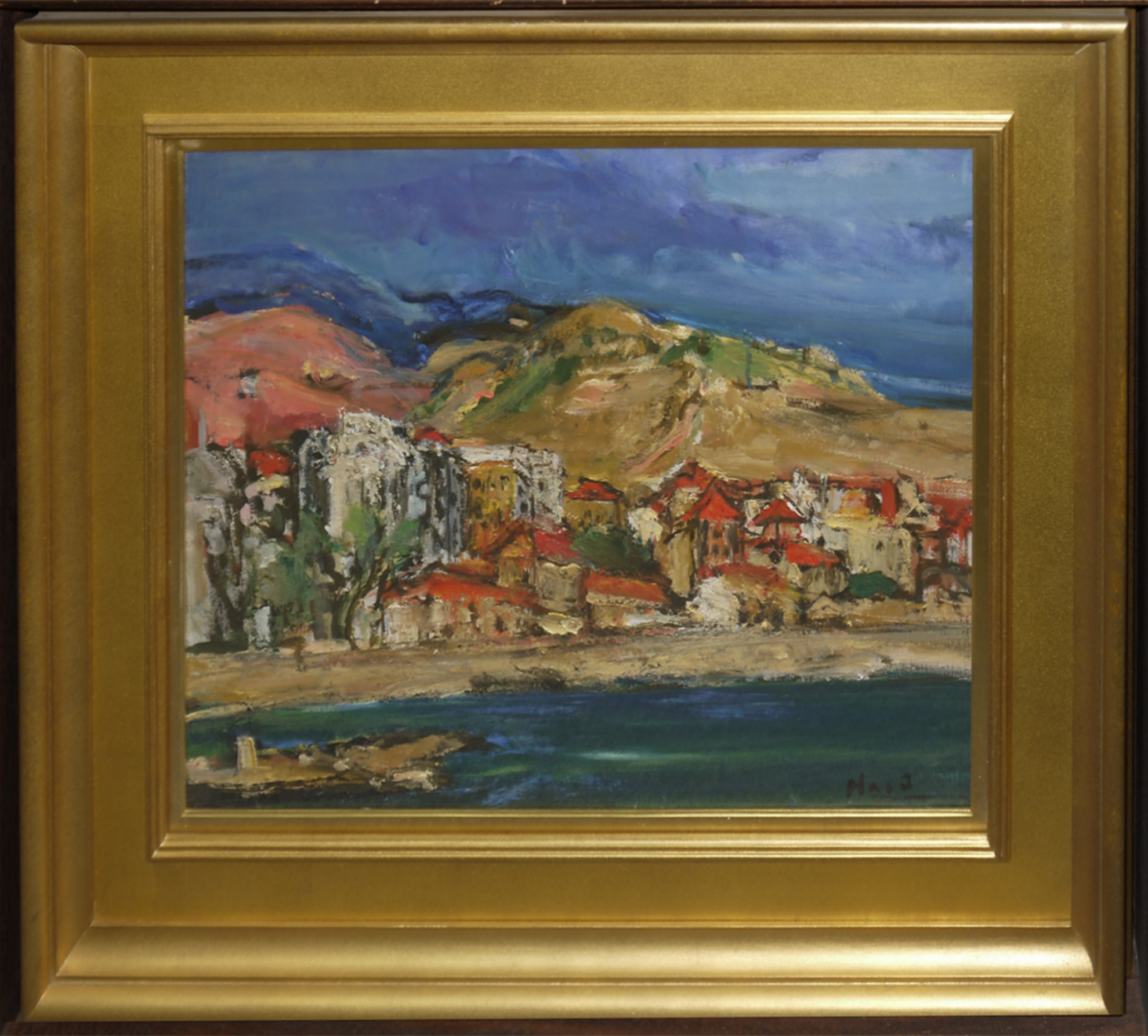 イタリアのサンレーモ風景を描いた重厚感ある風景画です。