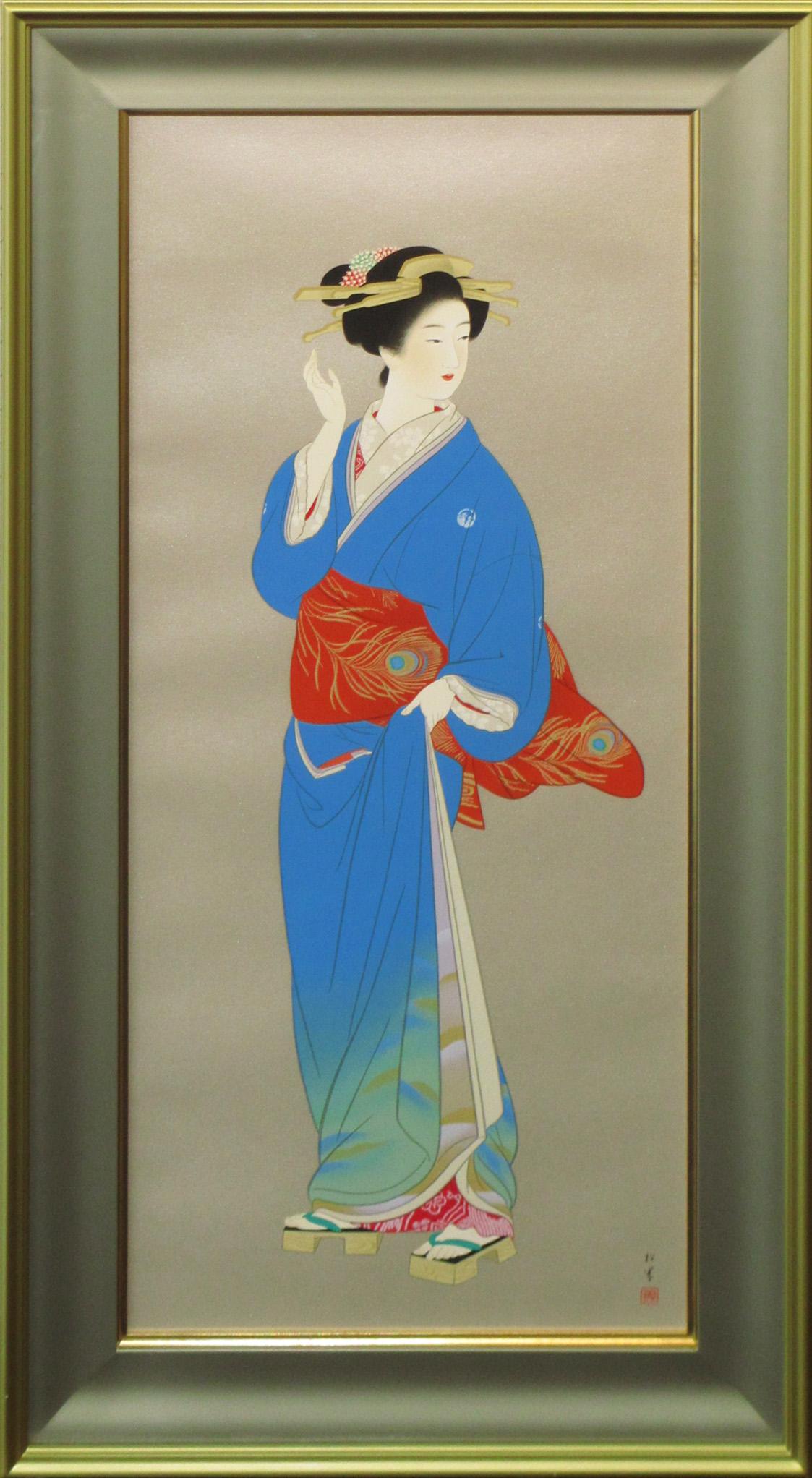 子・上村松篁が松園の作品の中でも特に好きな作品の一つとしてあげている天保歌妓の版画作品です。