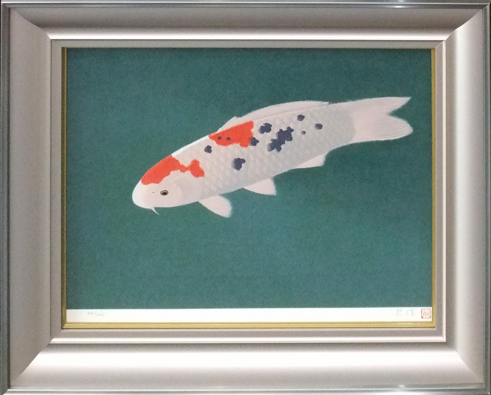 文化勲章作家・大山忠作の代表作、錦鯉の版画作品です。