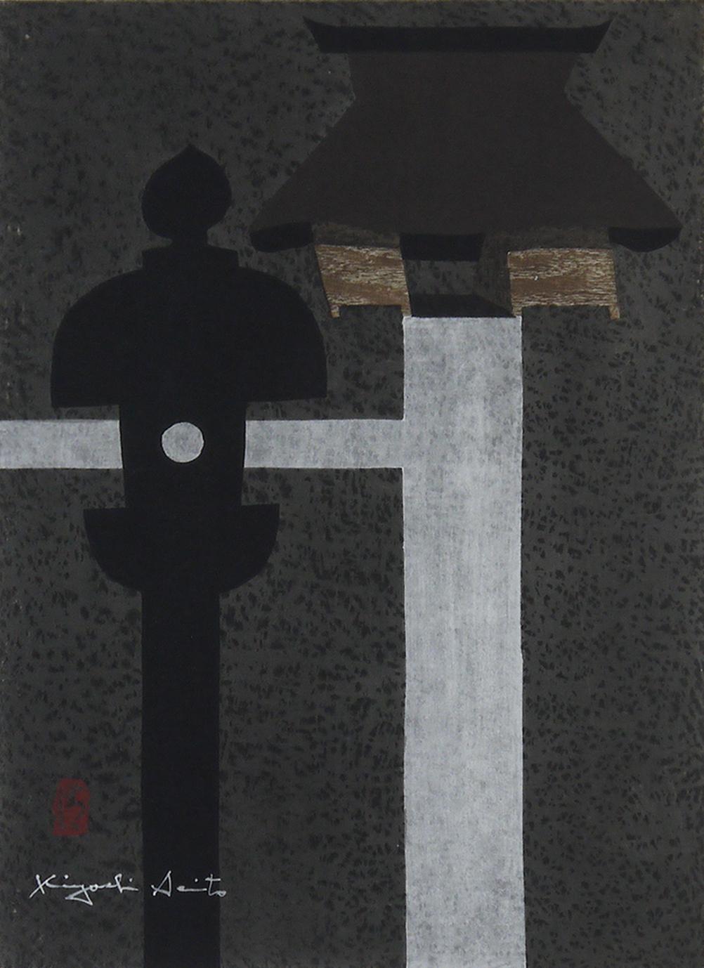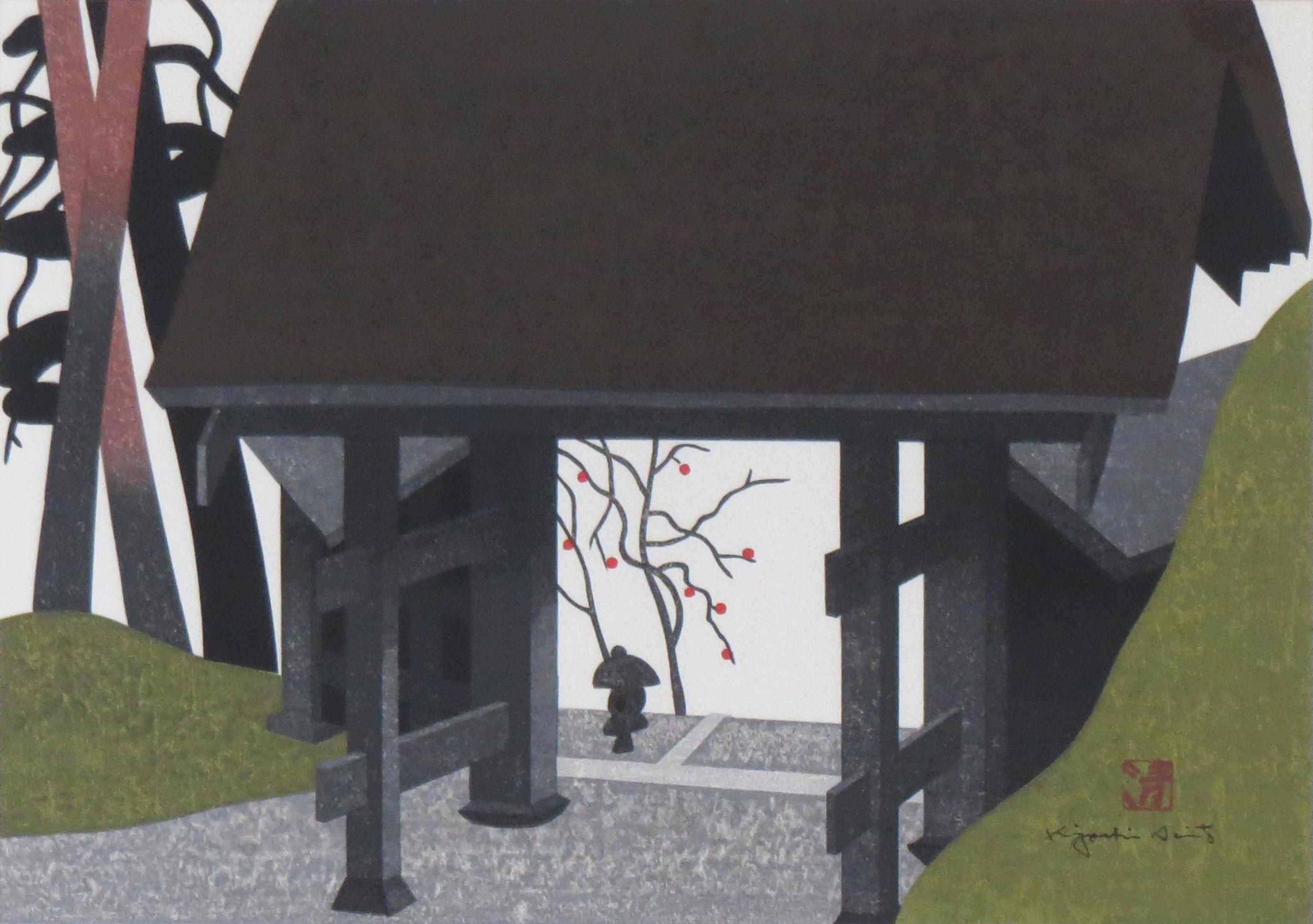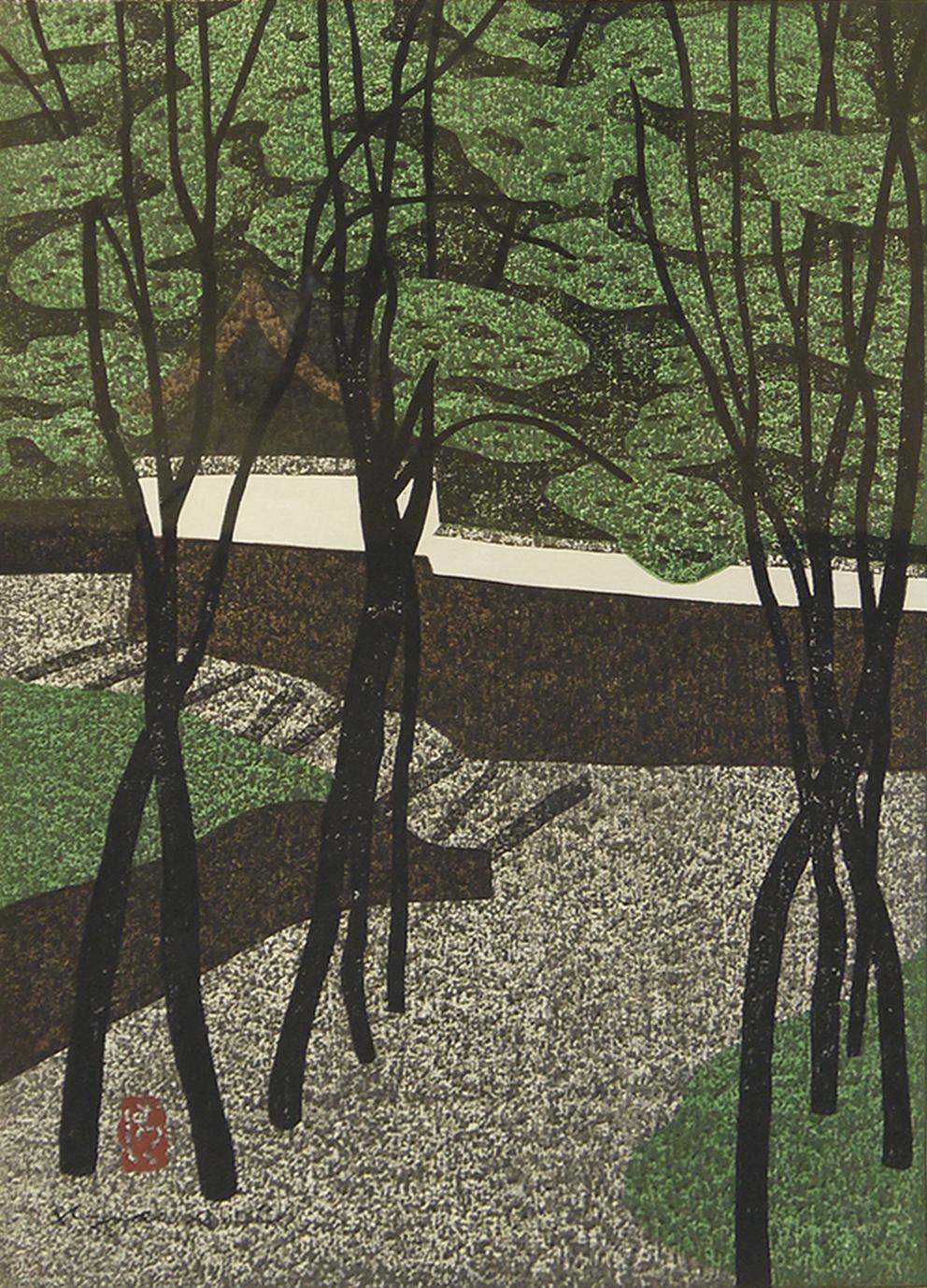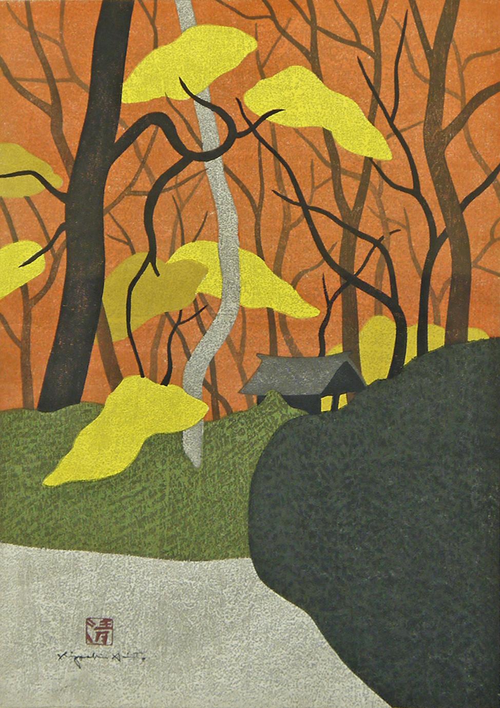 灯篭と木(扇子)
