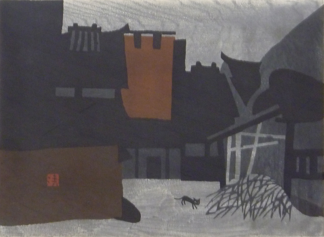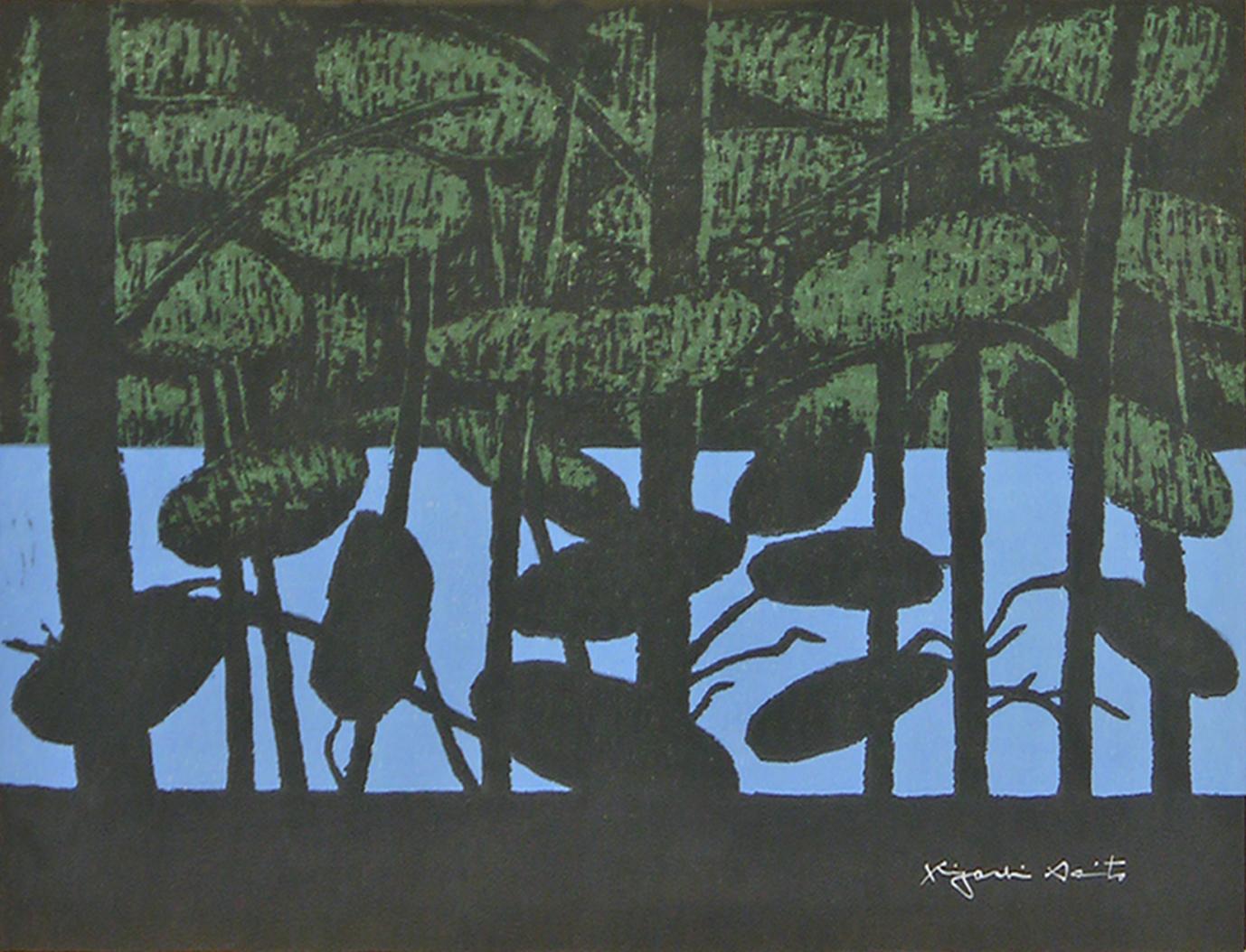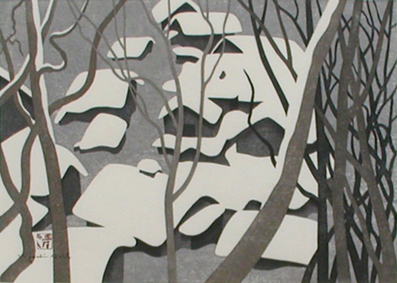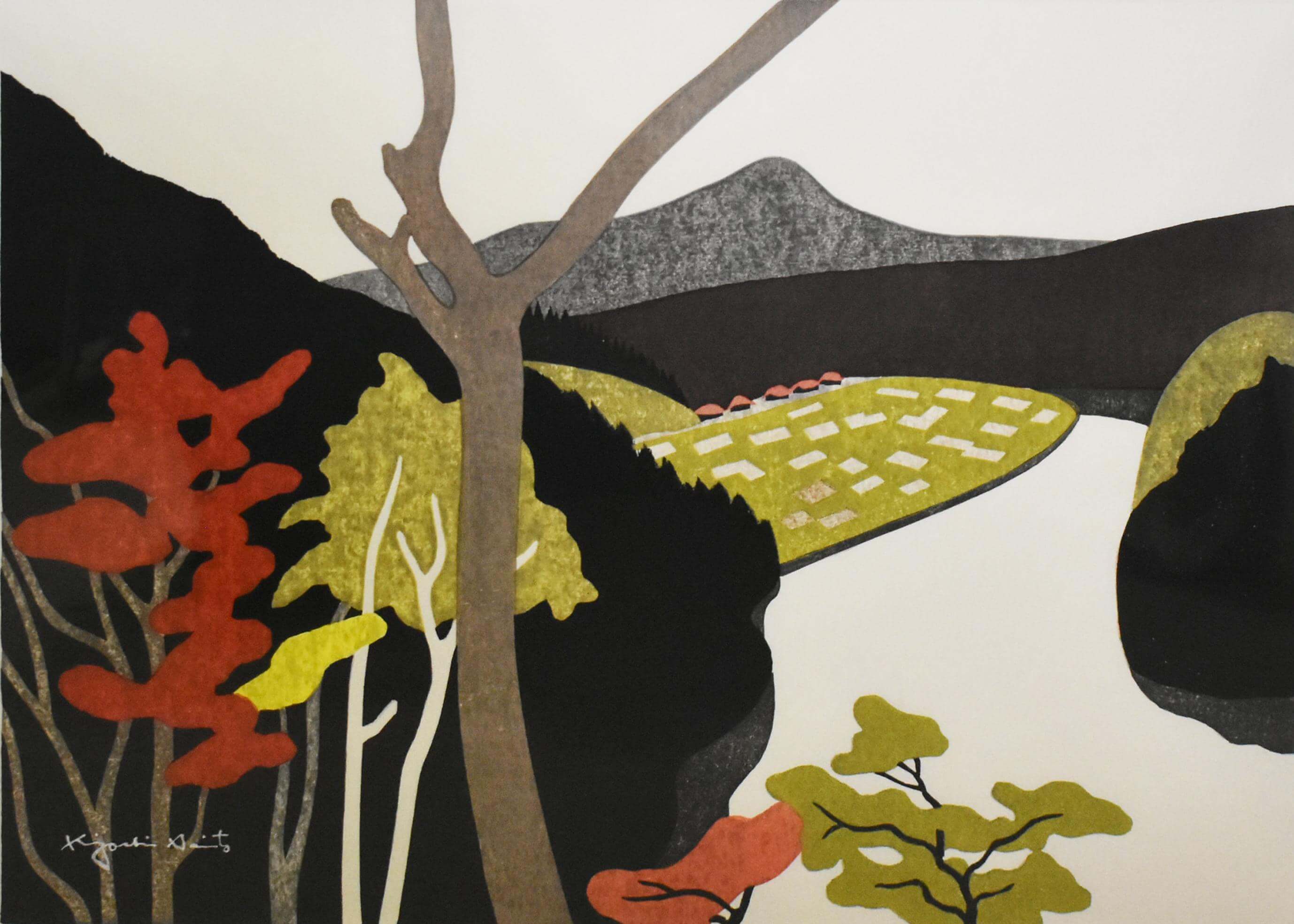 灯篭と木(扇子)