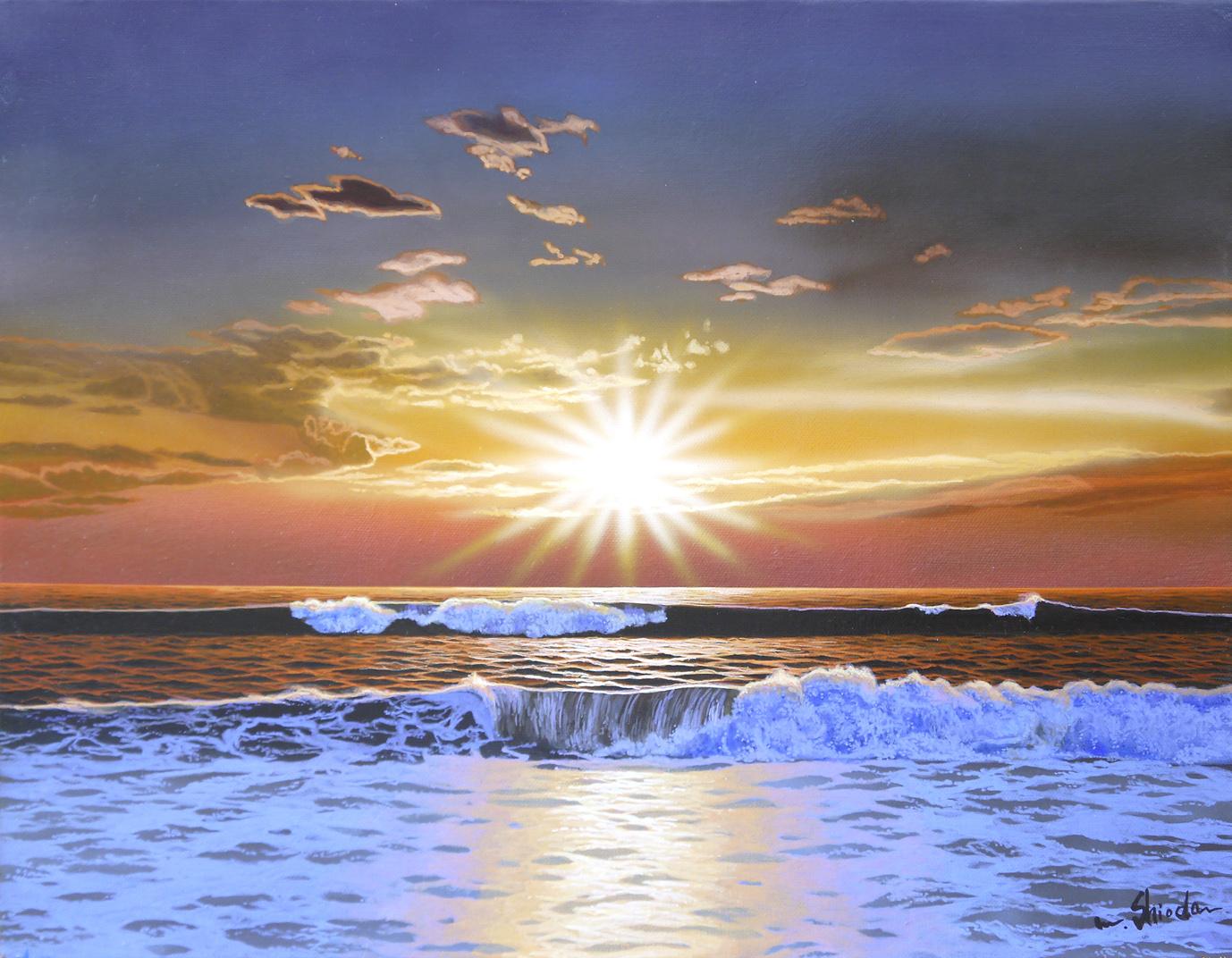 1941年- 東京生まれ。1961年 お茶の水美術学校を卒業。 1976年 日仏現代美術展入選 1979年 現代洋画精鋭選抜展金賞受賞 1980年 現代洋画精鋭選抜展記念大展優秀賞受賞 1986年 日仏現代美術展アカデミー・デ・ボザール賞2席 その他、ビブリオテック・デ・ザール賞1席、現代洋画精鋭選抜展記念大展銅賞受賞。 夜明けの海を多く描く人気作家。
