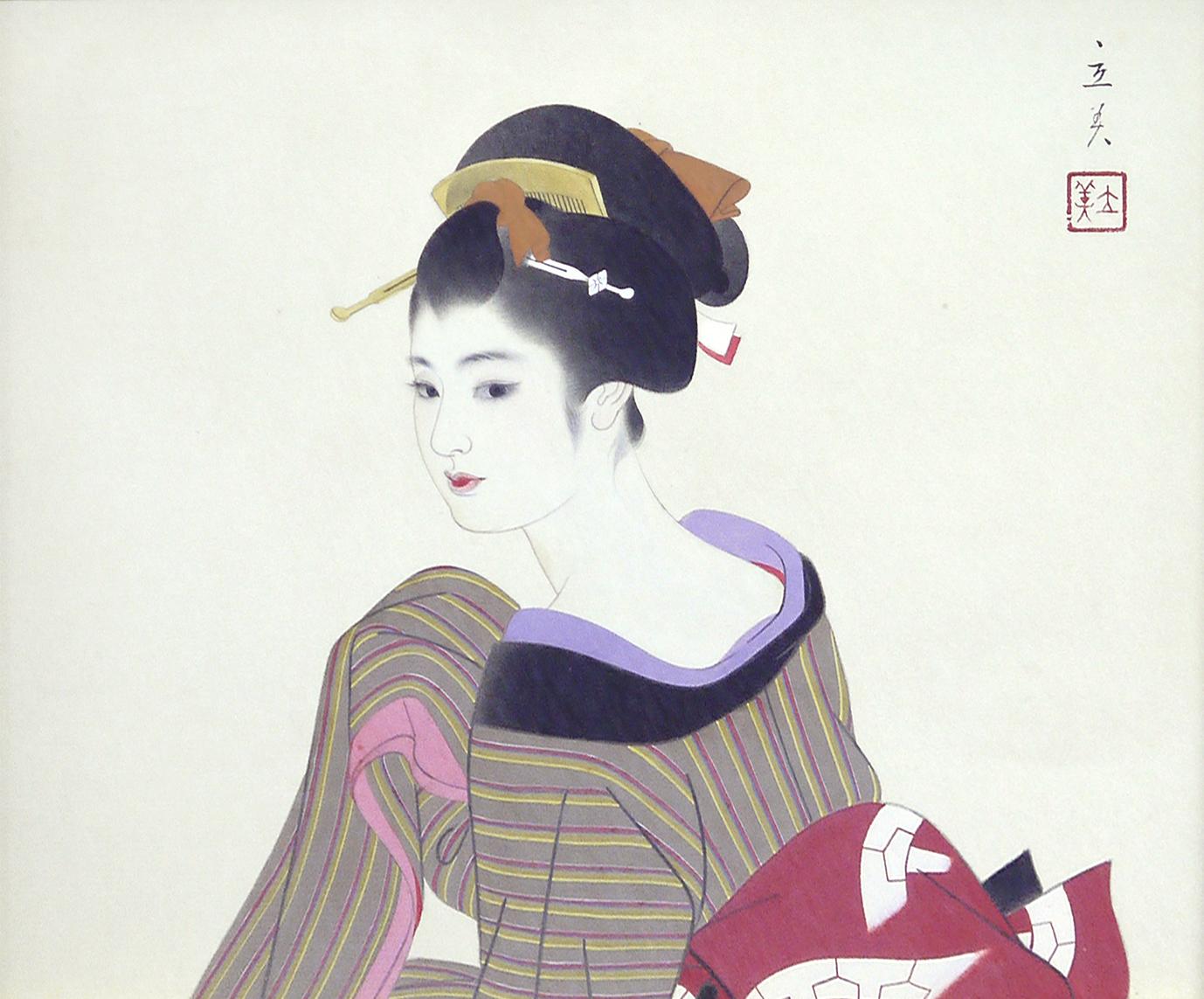 肉筆画も鏑木清方主宰の郷土会、師である山川秀峰、伊東深水らの主宰する青衿会等へ出品をする。その後、主婦の友・婦女会などの雑誌口絵などでその名を知られるようになり、林不忘原作の丹下左膳の挿絵などで岩田専太郎と並ぶ人気画家となる。