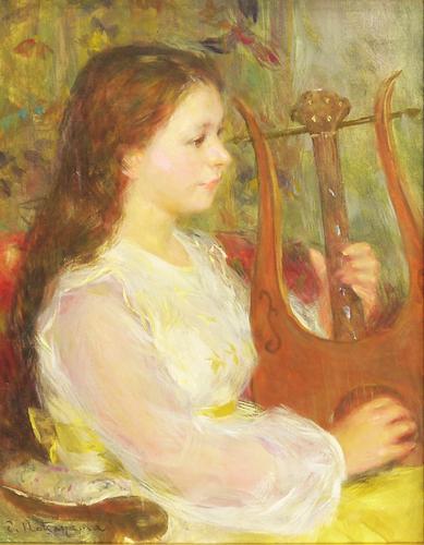 初期には裸婦も描いたが、 1965年に結婚してからは、ほとんど夫人をモデルに着衣の女性像を描き続けている。華麗な色彩と綿密な描写は定評が高く、優雅でヨーロッパ調の古風な趣のある女性像は早くから人気を集めている。