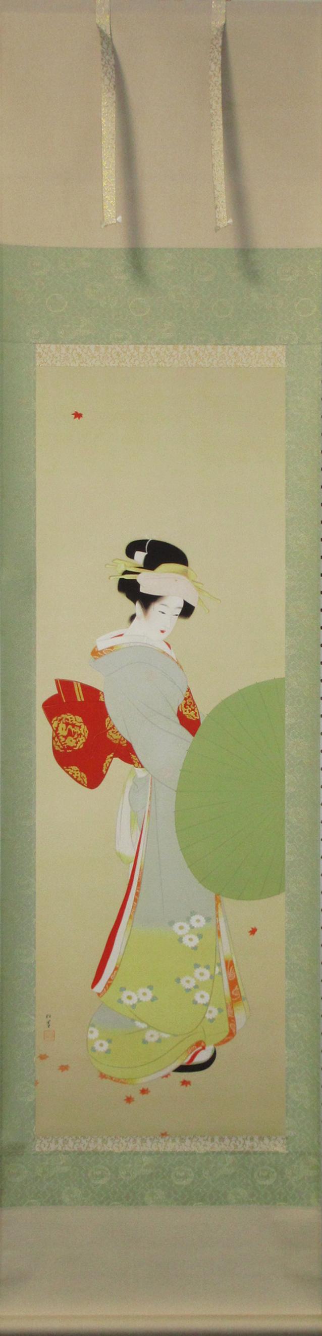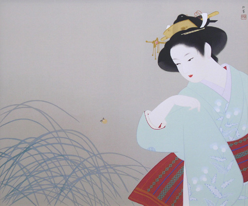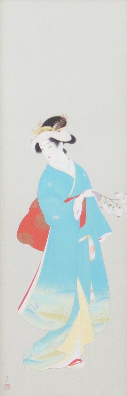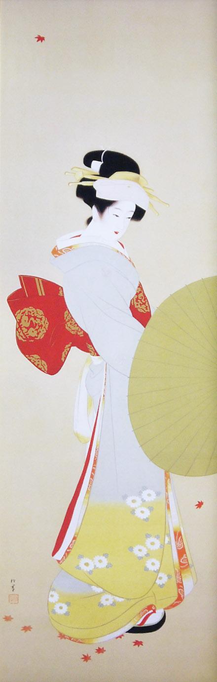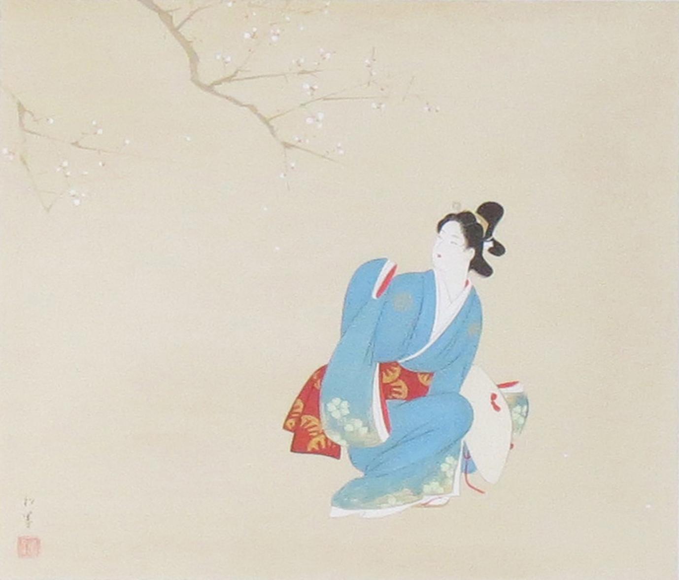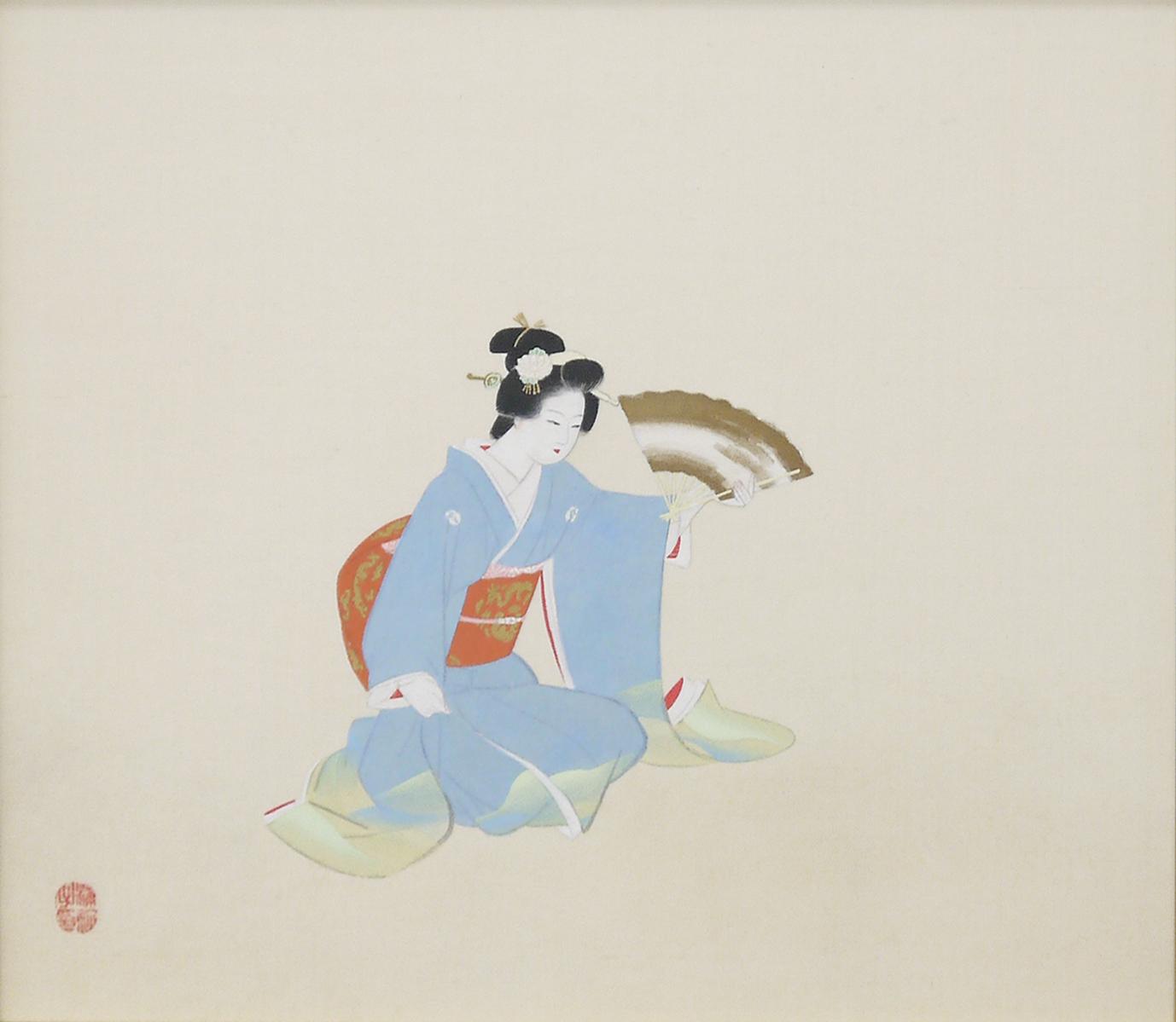 1875年-1949年 京都に生まれる。1887年、京都府画学校入学。鈴木松年、幸野楳嶺、竹内栖鳳に師事。1900年、第九回日本絵画協会・日本美術院連合展で銀牌受賞。パリ万国博覧会に「母子」を出品。1916年、文展永久無鑑査となる。海外出品も多く、高い評価を受け、帝展参与・帝国芸術院会員・帝室技芸員・日展審査員などを経て、1948年、女性初の文化勲章受章。京都の風俗、歴史、謡曲の物語等に取材した気品ある格調高い女性像を描く。