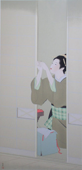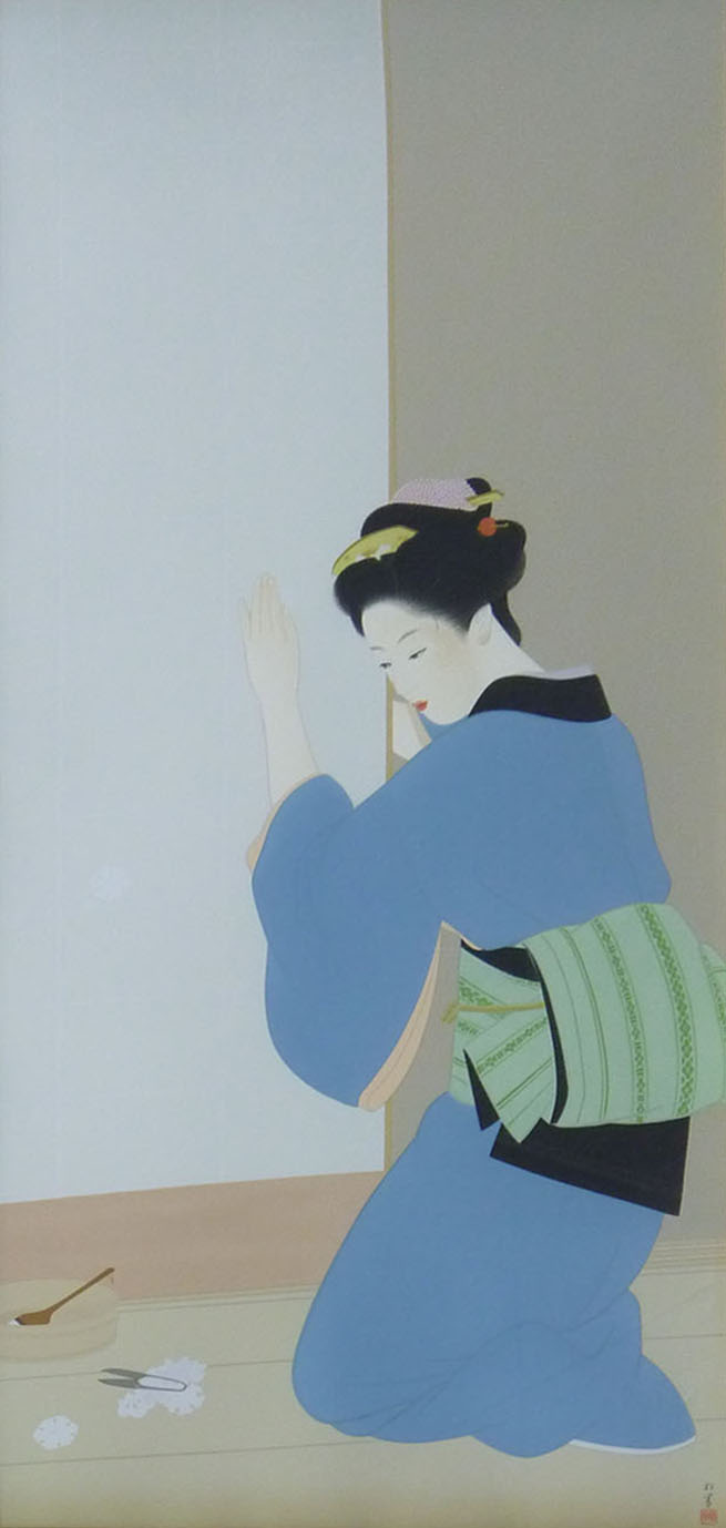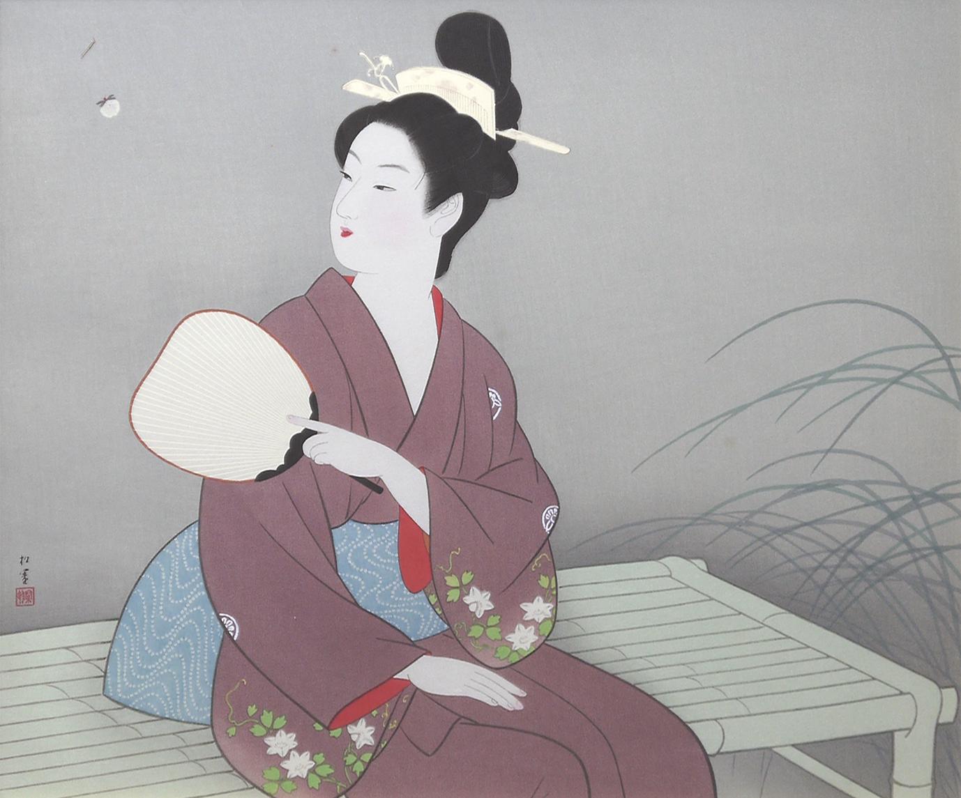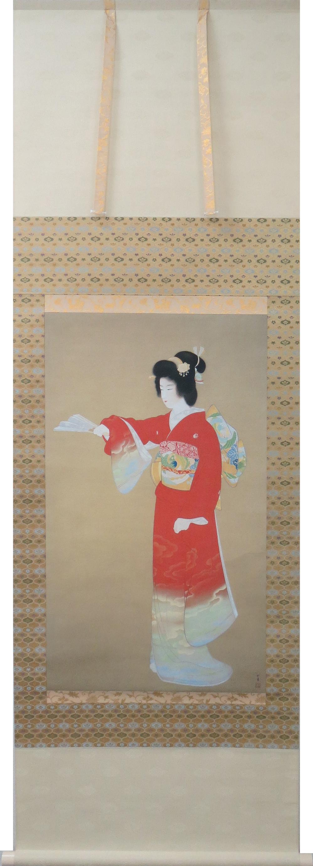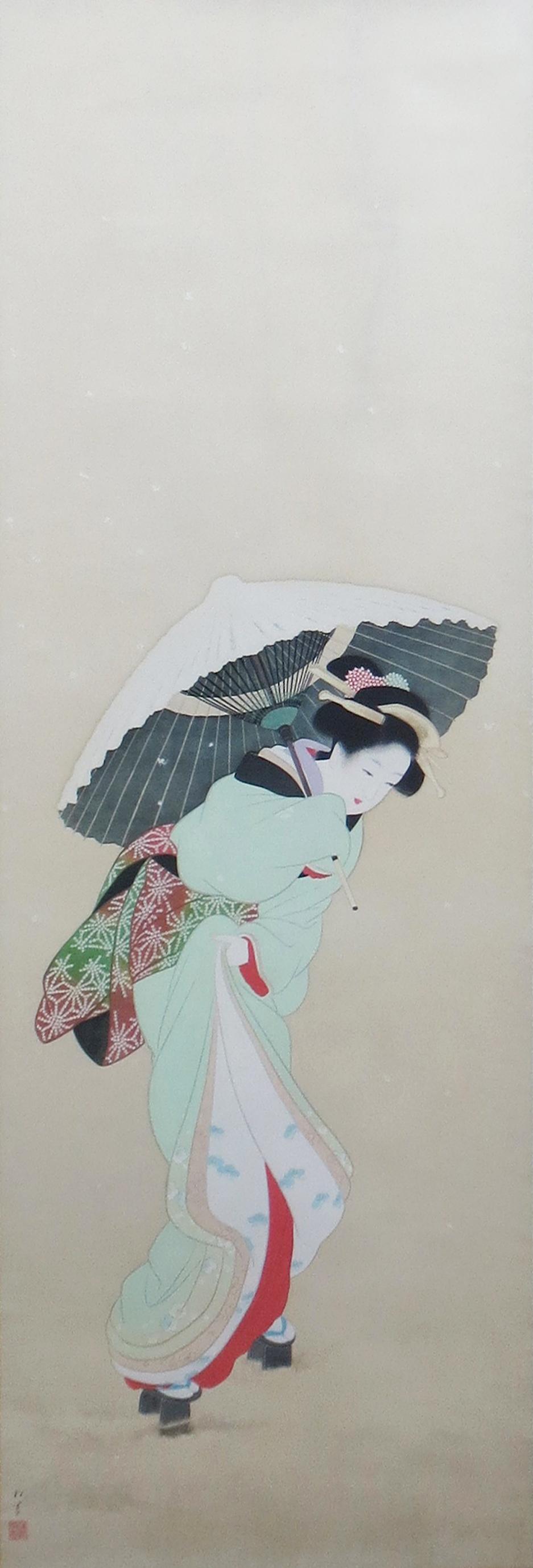 1875年-1949年 京都に生まれる。1887年、京都府画学校入学。鈴木松年、幸野楳嶺、竹内栖鳳に師事。1900年、第九回日本絵画協会・日本美術院連合展で銀牌受賞。パリ万国博覧会に「母子」を出品。1916年、文展永久無鑑査となる。海外出品も多く、高い評価を受け、帝展参与・帝国芸術院会員・帝室技芸員・日展審査員などを経て、1948年、女性初の文化勲章受章。京都の風俗、歴史、謡曲の物語等に取材した気品ある格調高い女性像を描く。